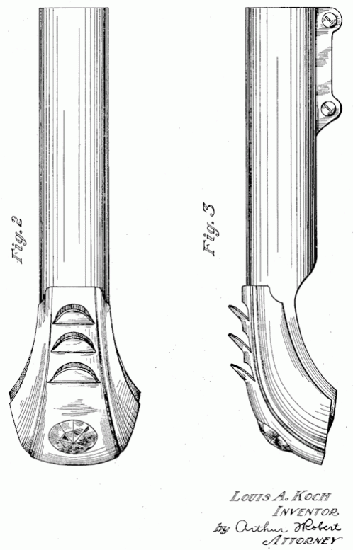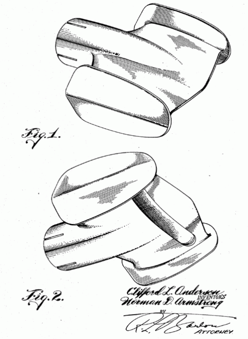 A design for an automobile exhaust shroud with rhinestone ornamentation. 1938. Invented by Louis A. Koch.