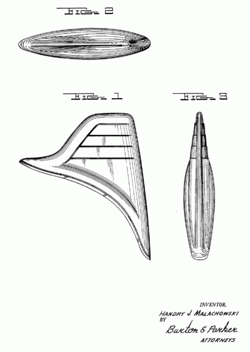 Providing a prominent modern style for your automobile. 1951. Invented by Handry J. Malachowski.