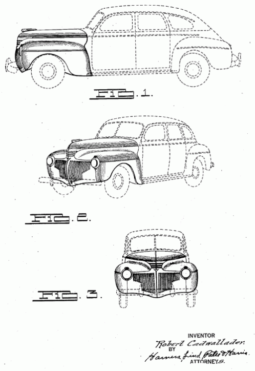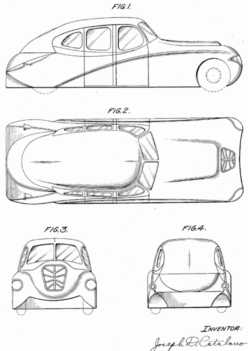 An ornamental design for an automobile. 1935. Invented by Joseph D. Catalano.